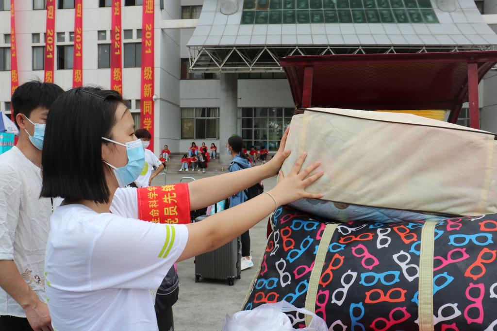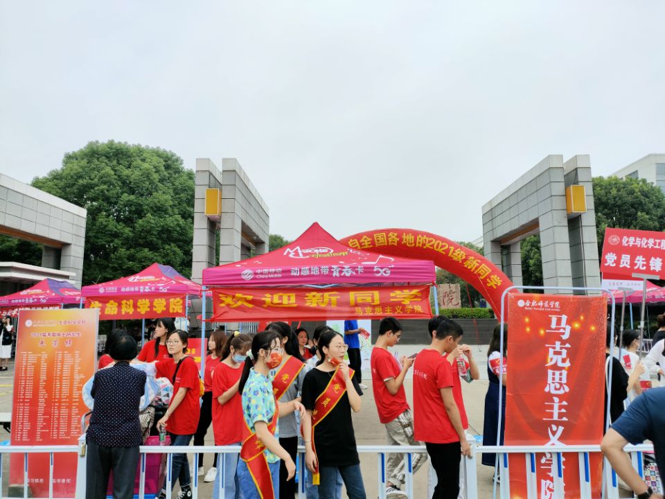本网讯 9月4日,是beat365唯一官方网站2021级新生开学报到的日子。金风送爽,秋色宜人,迎新工作井然有序地开展。根据上级防疫要求,新生家长无法进入校园,帮助新生顺利报到入住的重任则交到了各位老师和青年志愿者的肩上。为了确保新生顺利入学,学生处、团委组织开展了接站服务工作,志愿者们分组前往合肥站和合肥南站,为新生及其家长提供报到咨询、路线指引、行李搬运等服务,延续往年志愿者们与新生“多对一”的服务模式,确保疫情防控落实到位、迎新工作顺利进行。