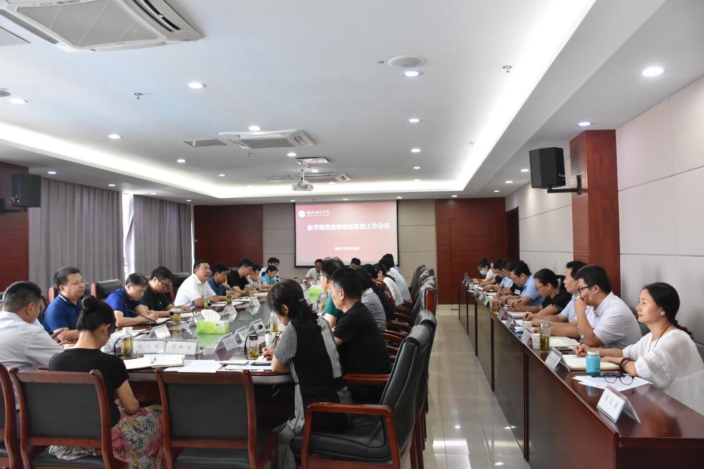 本网讯 8月26日上午,学院在行知楼第二会议室召开专题会议,部署安排新学期党建和思想政治工作。党委书记徐成钢出席会议并讲话,各二级党组织书记、专职副书记,组织部、办公室、纪委办、宣传部、学生工作部、团委、保卫处等部门负责人参加会议。会议由党委副书记吴昕春主持。