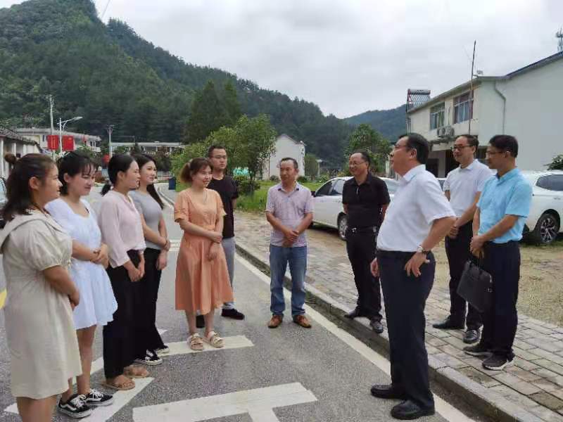随后徐成钢一行在金寨县政府有关负责同志陪同下来到金寨县花石乡考察。首先来到花石乡实验中学,该校校长介绍了学校有关情况,双方决定在这里建立“行知学堂”,由艺术传媒学院负责在明年暑期开展志愿服务。然后,来到大湾村看望了正在那里实践基地开展美术写生的2020级硕士研究生,勉励他们要珍惜实践锻炼机会,进行高质量的艺术实践,把美丽的大湾村收入画面,变为艺术美,在用艺术作品美化乡村、展现大湾村的发展巨变。