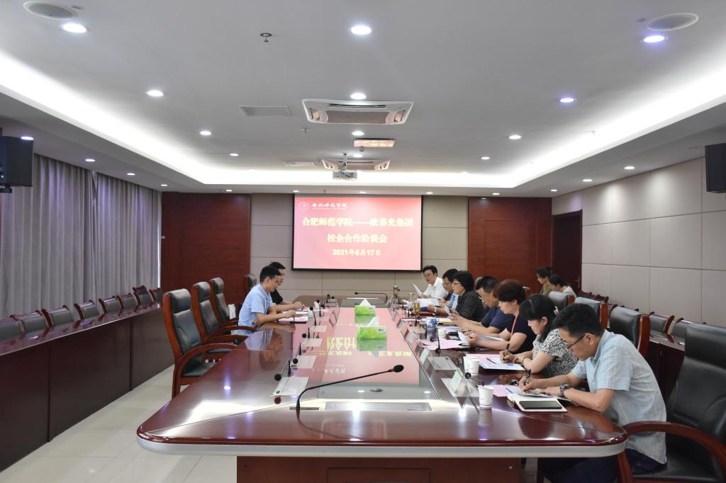 方东玲代表学院对欧菲光集团一行的来访表示欢迎,介绍了学院的基本情况、发展规划以及学院的办学定位、专业设置、师资力量、科研平台、校企合作等情况,希望以欧菲光集团落户合肥为契机,深度开展人才培养、科研平台、就业创业等方面的校企合作。她表示,欧菲光光学光电产业基地与我院滨湖校区为近邻,学院的人才队伍、专业设置等与欧菲光集团战略发展方向高度契合,近期要以专业共建、实习实训、学生就业等为切入点,积极开展互动交流,努力构建双方合作育人、合作就业、合作发展的新机制。