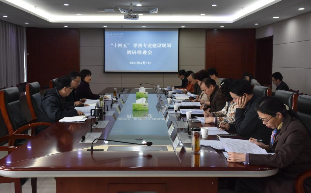 会上,教务处处长胡昂代表学科专业建设规划编制工作组就规划编制情况及主要内容作了汇报。与会人员立足学院实际和岗位职责,围绕重点学科建设、专业结构优化、师范特色打造等进行了充分的交流与研讨。