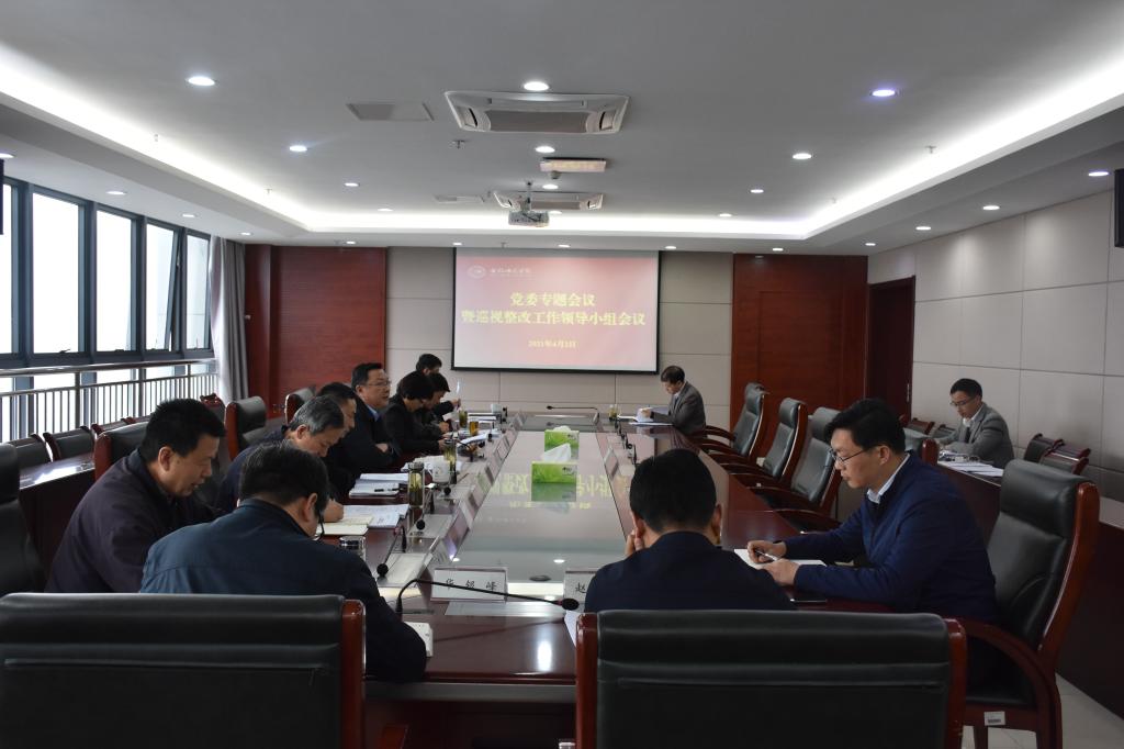 本网讯 为深化巡视整改、强化成果运用,扎实推进省委巡视发现问题“大起底、改到位、建机制”专项行动,4月2日,学院在锦绣校区第二会议室召开党委专题会暨巡视整改工作领导小组会,党政班子成员出席会议,巡改办相关成员单位负责人列席会议,会议由党委书记徐成钢主持。
