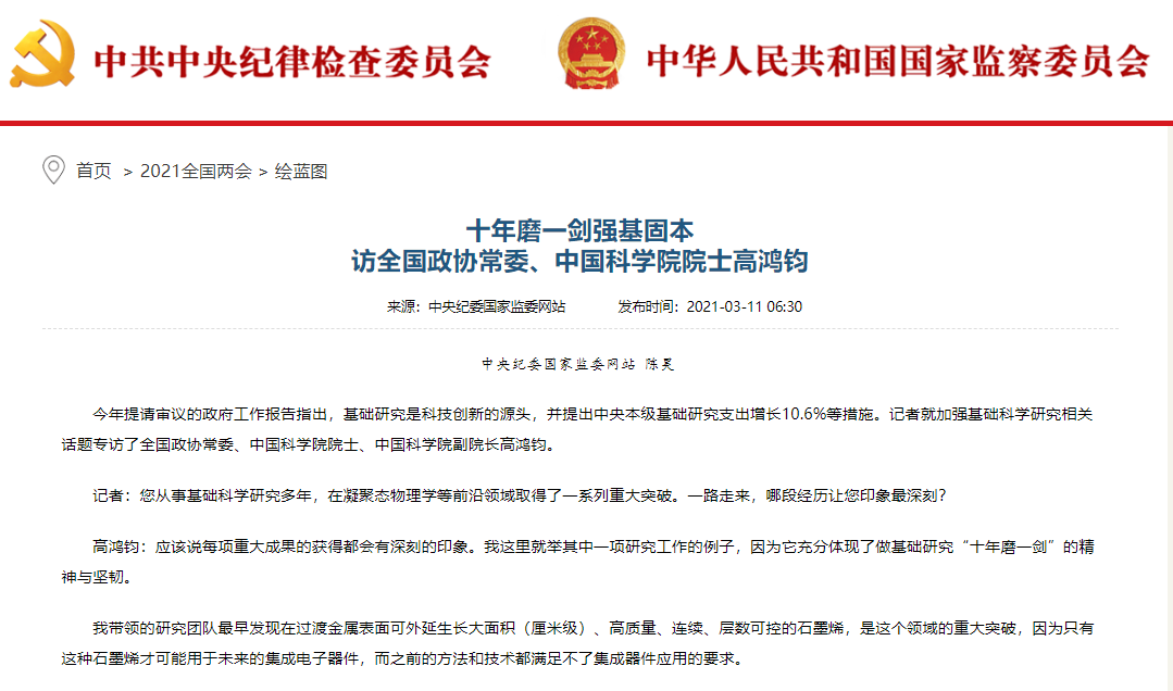 今年提请审议的政府工作报告指出,基础研究是科技创新的源头,并提出中央本级基础研究支出增长10.6%等措施。就加强基础科学研究,中央纪委国家监委网站对高鸿钧进行了专访。
