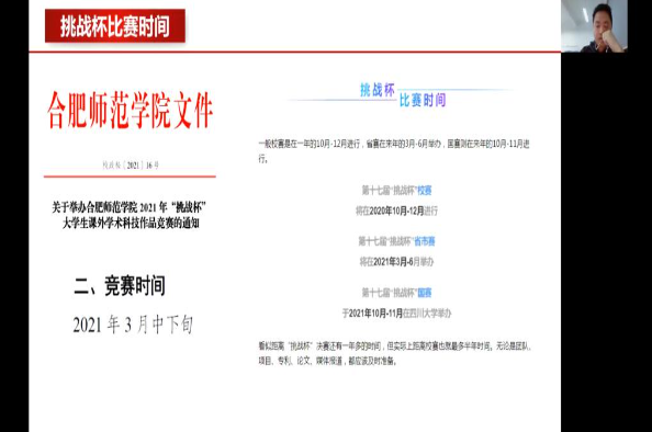 本网讯 3月11日晚,2021年“挑战杯”大学生课外学术科技作品竞赛培训会依托腾讯会议于线上召开。会议邀请电子信息与电气工程学院张量教授、刘铭传学院分团委书记宗彪分赛道为参赛学生提供了全方位、多角度的专业指导。