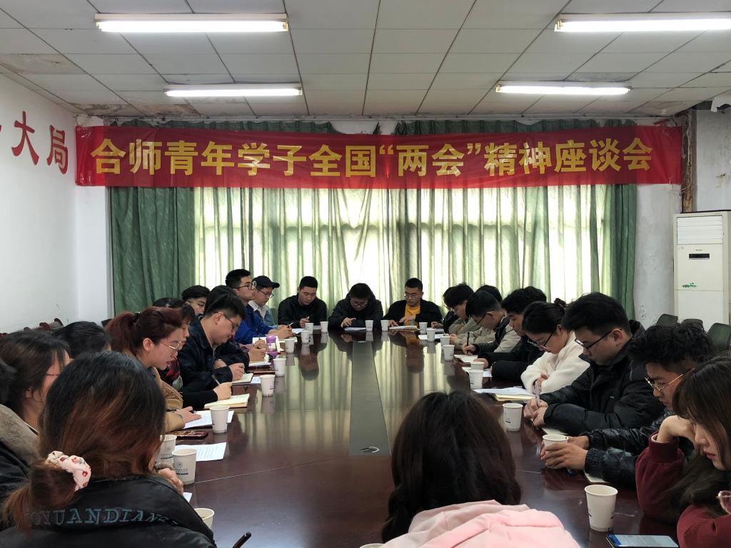 本网讯 3月10日中午,合师青年学子全国“两会”精神学习座谈会在锦绣校区共青之家召开。校团委全体人员、各学院和各学生组织学生代表参加会议。校团委副书记刁文彬主持会议。