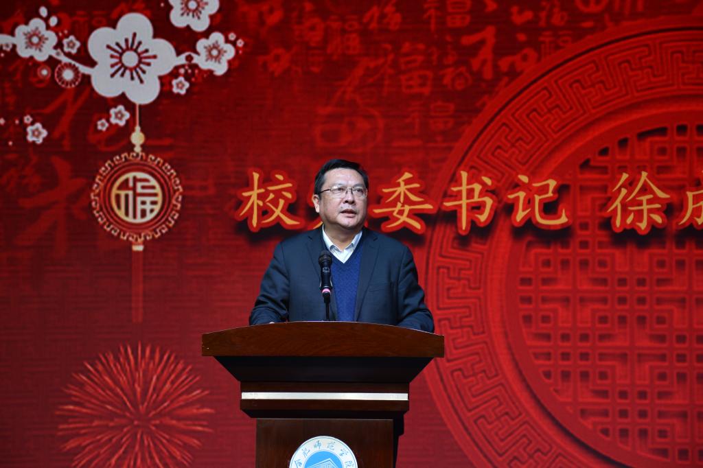 徐成钢代表学校发表了热情洋溢的新年贺词,向一年来勤奋学习、努力工作的全校师生致以美好的祝福,向精心组织、积极参与本届科技文化艺术节的老师和同学们致以诚挚的问候。他指出,2020年是学校收官“十三五”、谋划“十四五”、统筹推进常态化疫情防控与党建事业发展的不平凡之年。全校师生风雨同舟、砥砺前行,抗疫情、抓党建、促发展,各项工作取得了新的进展和成就。学校广大团学组织和青年学生在“行知学堂”、“三优”创建、创新创业等工作和中国青年志愿服务项目大赛、挑战杯、中国大学生自强之星等活动中取得了优异成绩,展现出了昂扬风貌。新的一年,学校将坚持围绕中心抓党建,持续提升师生获得感幸福感,加快构建高质量人才培养体系,全面深化地方应用型高水平大学建设。他号召全校上下以习近平新时代中国特色社会主义思想为指导,努力用劳动筑梦、用实干圆梦,共创beat365唯一官方网站的美好未来,以扎实业绩迎接中国共产党成立100周年。