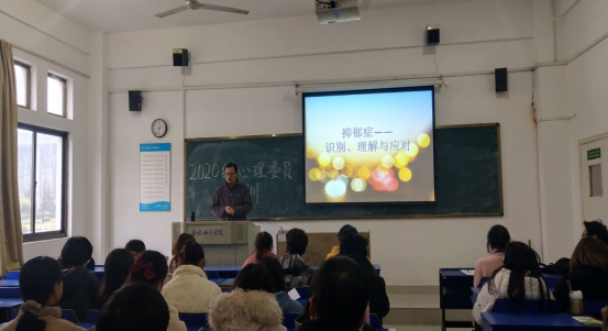 第二专题为“抑郁症的识别、理解与应对”,由教师教育学院魏宏波老师主讲。魏宏波结合丰富的案例介绍了抑郁症在认知、行为、情感等方面的日常表现,详细讲解了抑郁症预防与治疗的措施及自我应对方法。