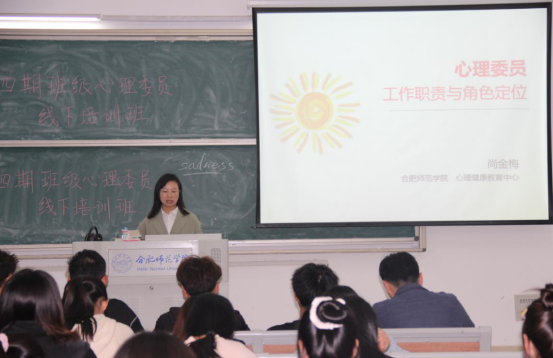 第一专题为“心理委员的工作职责与角色定位”,由心理健康教育中心主任尚金梅老师主讲。尚金梅强调设立班级心理委员的重要意义,详细讲解了心理委员的四种角色定位和工作职责,特别是针对心理委员作为非专业人员如何在心理危机干预中发挥作用进行了重点介绍。