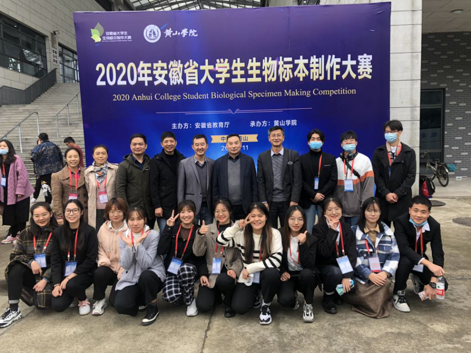 本网讯 近日,2020年安徽省大学生生物标本制作大赛在黄山学院举行。本次大赛由安徽省教育厅主办,安徽省动物学会、安徽省植物学会协办,黄山学院承办。安徽省大学生生物标本制作大赛是安徽省大学生学科和技能竞赛B类赛事,现已成为一项颇具影响力的品牌学生活动,搭建了省内高校大学生科技创新成果交流的重要平台,对于提升学生创新能力,培养学生实践能力、创新精神和团队合作意识,提高人才培养质量起到积极的作用,一直受到省内各高校的广泛重视。本次比赛共有来自全省38所高校师生参赛,参赛作品250件,其中植物制作组90件、动物制作组58件及创新创意组102件作品,参赛作品数量和质量均达历史新高。