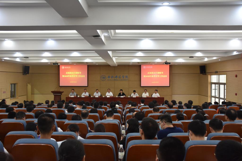本网讯 为深入学习贯彻习近平总书记考察安徽重要讲话精神,表彰学习先进,回顾上半年工作,动员部署下半年重点工作,9月9日下午,学院庆祝第36个教师节暨2020年秋季开学工作会议在锦绣校区学术报告厅召开。党委书记徐成钢,党委副书记、院长方东玲,党委副书记、副院长李进华,党委副书记吴昕春,副院长谢阳群、姚本先、曹卓良,纪委书记徐文林,处级干部,正高职称人员,“两委会”委员,受表彰集体和个人,拜师仪式教师代表,新进教职工,辅导员参加会议。会议由方东玲主持。