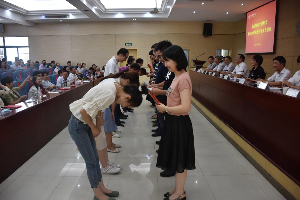 大会还隆重举行了青年教师拜师仪式,各学院青年教师代表向自己的指导教师献上拜师帖,并行拜师礼。