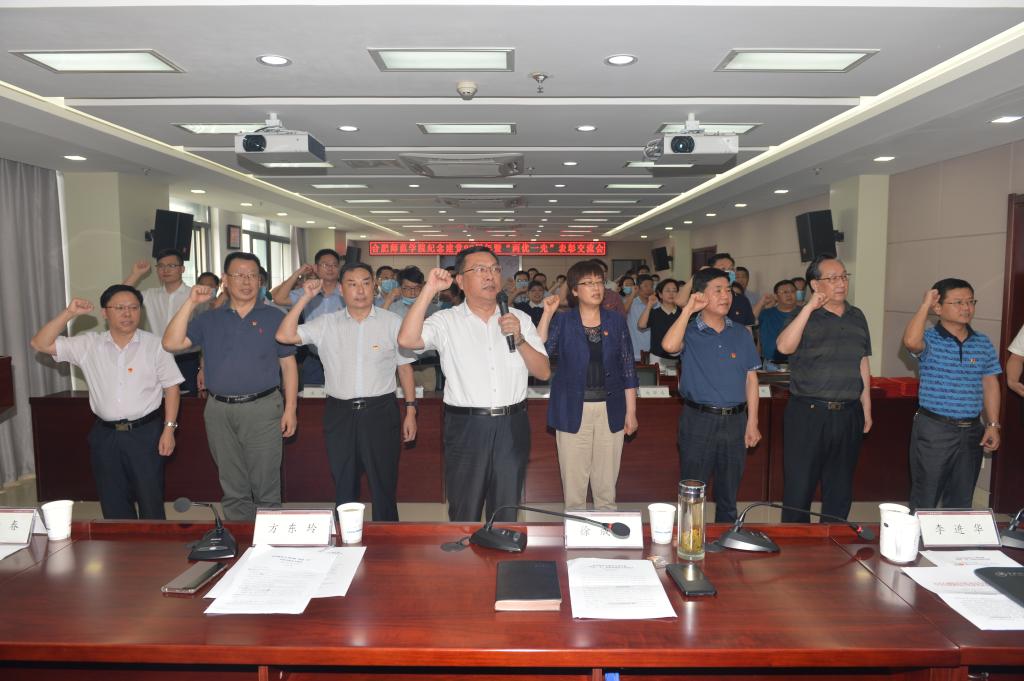 徐成钢指出,今年是学院完成“十三五”规划的收官之年,是谋划“十四五”发展的关键之年,是申报硕士学位授予单位和地方应用型高水平大学建设的决胜之年,是学院发展进程中极其重要的一年,各项改革发展的任务十分艰巨,加之新冠肺炎疫情给我们的工作带来的巨大冲击,需要全院上下加倍努力,尤其需要各级基层党组织战斗堡垒和广大党员的先锋模范作用的充分发挥。他代表学院党委提三点要求:一是聚焦传承发扬,坚定听党话跟党走的思想自觉。要继承发扬党的优良传统,牢牢扭住理想信念这个“总开关”,坚定不移地跟党走,把高等教育事业不断推向前进;要坚持走中国特色社会主义道路,奋力开拓中国特色社会主义更为广阔的发展前景;要增强向党中央看齐的自觉性,各级党组织和全体党员经常、主动、全面地向党中央看齐,向党的理论和路线方针政策看齐,向习近平总书记治国理政新理念新思想新战略看齐,坚决地贯彻落实。二是聚焦全面从严,坚定建强战斗堡垒的政治自觉。要建强基层党组织体系,以深化“三个以案”警示教育等为契机和抓手,优化两级党组织设置,继续实施党支部建设提升行动,深入实施教师党支部书记“双带头人”培育工程,坚持二级党组织书记例会制度,分层组织制定年度基层党建“三个清单”,改进考核方式,强化结果运用,压实党建责任;要提升党员教育管理质量,坚持突出政治标准,完善“三个一”入党启蒙教育机制,实行发展党员“一二三四五”工作法,继续推行入党答辩制等创新做法,促进党员质量和工作水平双提高;要推动基层党建质量创优,加强标杆院系、样板党支部的建设和培育力度,着力推动基层党建“对标争先”,继续组织开展“四好”创建活动,进一步凝练打造党建工作品牌,推动基层党组织整体功能提升。三是聚焦立德树人,坚定投身事业发展的行动自觉。各级基层党组织要切实强化党建引领,健全党建与事业发展协同融合机制,把党建工作渗透到人才培养、科学研究、社会服务、文化传承创新之中,以事业发展新成效检验党建工作新成效;全院师生党员要充分发挥表率作用,突出在提升专业能力、坚持修身正己、服务学院发展上当先锋,努力在本职岗位上做出新贡献;各级党员干部要注重突出头雁效应,带头勇挑重担,把全面推进党建和事业发展各项工作牢牢记在心上、时时扛在肩上、紧紧抓在手上,采取务实措施,真抓实干、确保实效。