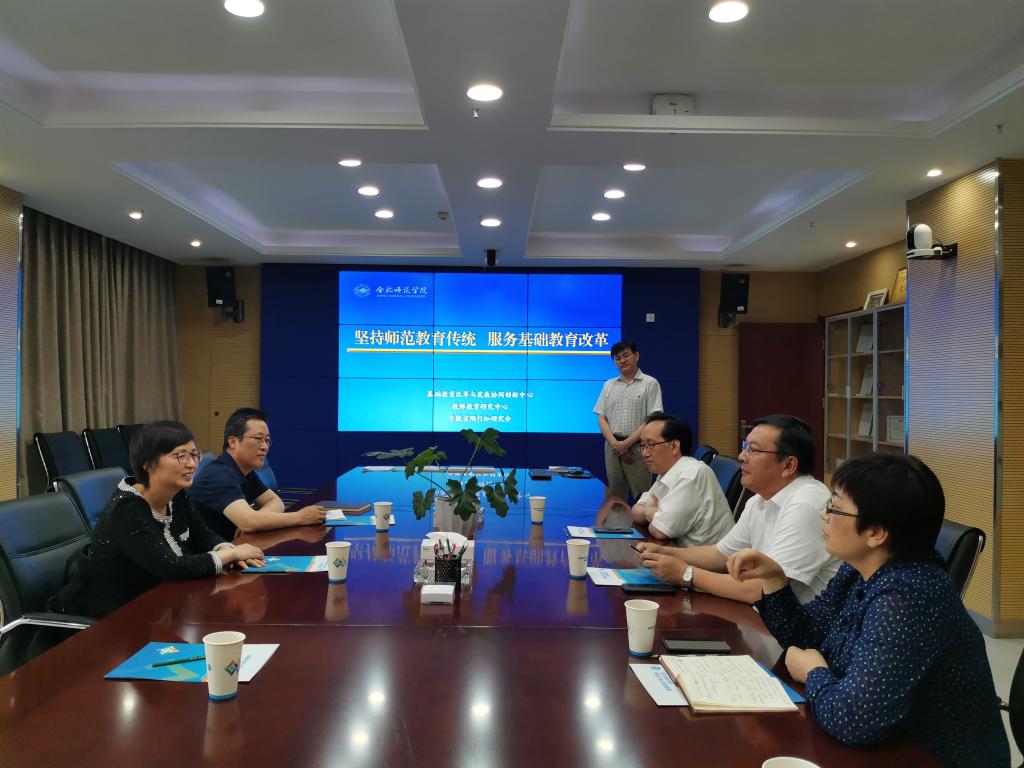 本网讯 6月10日,中共安徽省委教育工委委员、安徽省教育厅副厅长徐静平和师资处处长朱玉华一行前来我校基础教育改革与发展协同创新中心调研,学院党委书记徐成钢,党委副书记、院长方东玲,副院长姚本先及相关职能部门负责人陪同调研。