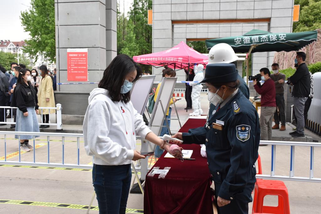 本次演练分为学生返校报到日某学生出现体温异常和返校后学生在宿舍出现体温异常两个场景。场景一由31名辅导员扮演返校学生、家长和教师等角色,体温正常学生凭学生证(校园一卡通)、安康码有序通过测温通道,并经后勤处人员专业消毒、二级学院资格复查后入校;体温异常学生由校医院医务人员在临时留观点复测体温后,登记信息并转介至定点医院,学生情况逐级上报。保卫处处长周荣就返校当天校门管理及报到流程进行汇报。