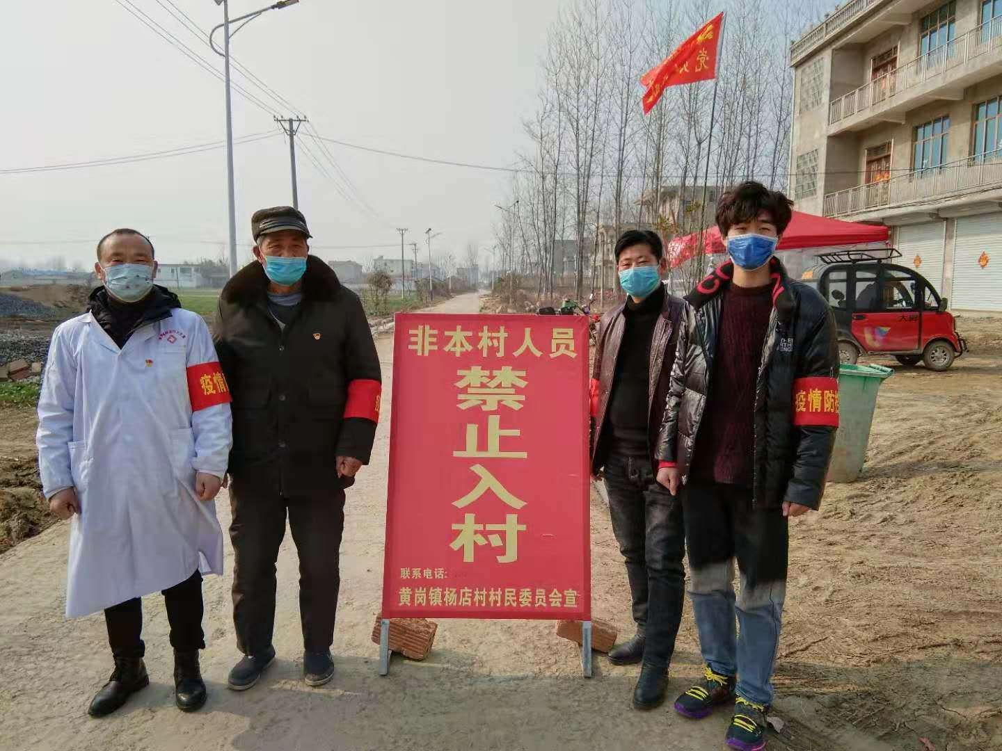 张京伟(右一)在村口疫情防控工作岗位上