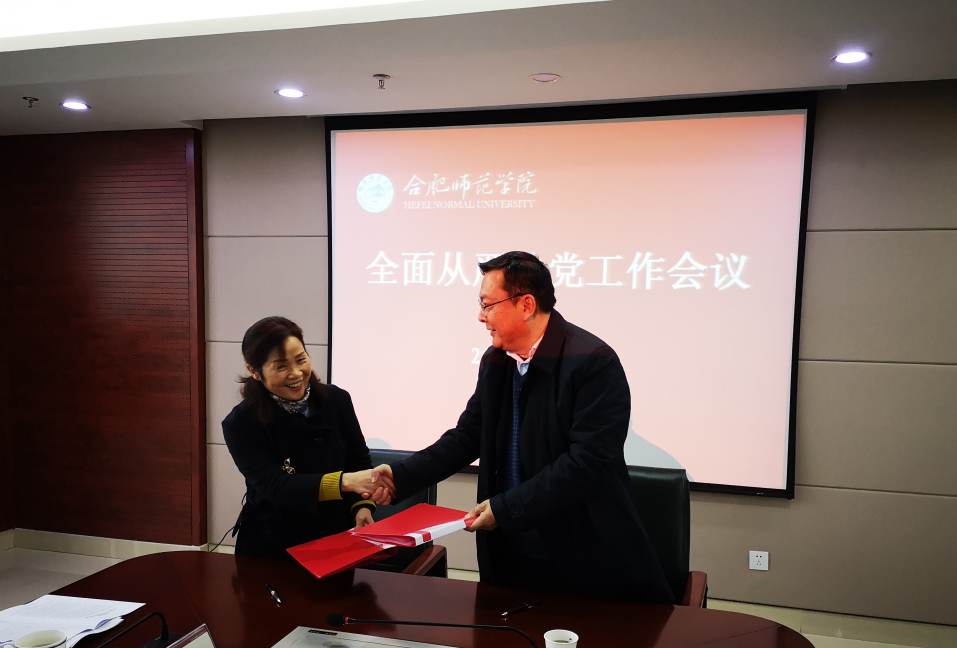 在《全面从严治党责任书》签订仪式上,徐成钢代表党委分别与两位处级干部代表签订责任书。