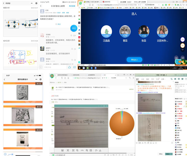 院领导集中观摩了电子信息与电气工程学院范程华老师主讲的《电路分析基础》、文学院姜忞老师主讲的《语文课程与教学论》、艺术传媒学院杨奥老师主讲的《图形创意设计》、教师教育学院何婧老师主讲的《0-3岁婴幼儿教育》和计算机学院王凡老师主讲的《数据结构》等5门课程。这些课程主要建设在超星泛雅平台和雨课堂平台,授课教师通过雨课堂语音直播、超星平台+腾讯QQ群直播、视频录播等多种形式开展教学,教学资源准备充分、教师教学设计精细、学生按时到课、师生互动顺畅,在线课堂教学能达到预期教学目标。教师们通过对课程资源的精心准备,对音频、视频录制的精雕细琢,对在线教学的反复模拟,对可能问题的提前预案,真正做到了在线教学从容不迫,教学效果“不打折”。
