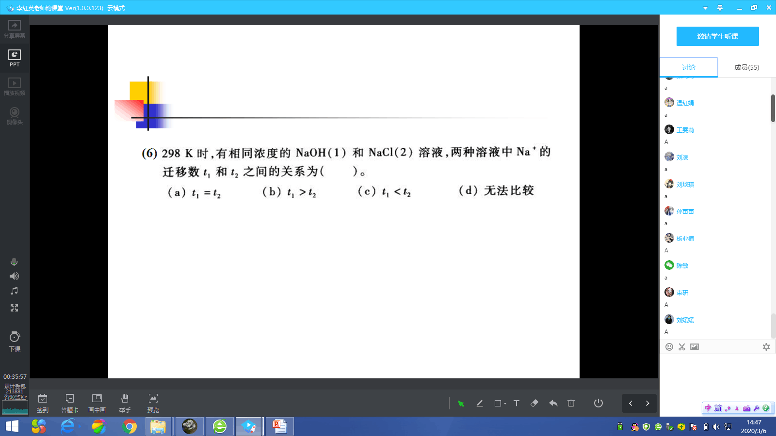 突如其来的疫情,让全程线上教学成为了新学期新的教学模式,虽然开课前我做了很多准备工作,但对我而言,线上教学仍然是新鲜事物,实际运行中或多或少地存在一些问题。可我却惊喜地发现,曾经课堂上比较沉默的同学们,化身了“问题少年”,时空的距离反而让我们的沟通变得更加便捷。同学们高涨的学习热情将不断激励着我不忘初心、牢记使命,在这场疫情防控阻击战中,我将继续站好属于我的这班岗。