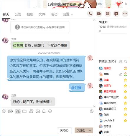 从2月3日接到学校相关通知直到2月17日正式在线授课前,我一直在参与各种平台(如“学习通”、“雨课堂”)的使用培训,比较各个平台的优缺点。最后我还是选择自己比较熟悉的“学习通”作为主要教学平台。除此以外,我及时建好每个课程的班级QQ群,确保在“学习通”平台遇到问题时,能够及时地转移到QQ群中继续学习。