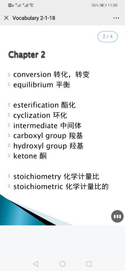 一是利用雨课堂帮助学生实现课前的预习。《高分子化学》是化工专业开设的一门双语教学课程。我在课前及时发布课程相关英语专业词汇的讲解和课程相关的视频,让学生对于课程相关词汇有充分的了解,并通过视频学习高分子化学课程中的相关概念和重点内容。