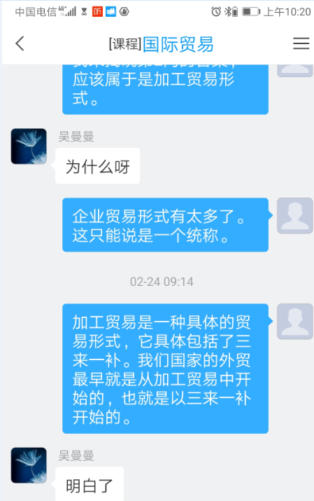 为认真贯彻教育部和省教育厅关于做好疫情防控期间教学工作的部署要求,确保“停课不停教、停课不停学”,根据学校和学院的线上教学指导意见,我承担了新学期19级国际经济与贸易专业学生《国际贸易》课程的线上教学任务。本着线上教学期间“站好岗,授好课,教好学生”的原则,在《国际贸易》课程线上教学的前期准备、线上授课和课后总结各环节过程中,我坚持以饱满的精神、认真负责的态度投入工作,践行好教师的职责。