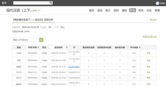 线上开课以来,文学院认真落实落细各项工作。我所执教的《现代汉语》专业课程,在作业细节处理上,积极利用线上教学技术优势,把握三步骤,用好作业“互批”,融入“育人”功能。