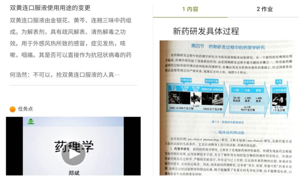 一、多途径、多方式,重积累、早准备。利用各种教学平台加强学习,借鉴线上教学创建方法及线上教学内容设计原则,对自己将要教授的课程进行内容创建和补充。在学习和实践过程中,一方面认识并掌握线下面对面课堂中较少使用的网络教学、慕课、翻转课堂等概念和区别;另一方面提高对各种教学手段的运用,学用结合不断改进和提升教学方式。根据所授课程特点,对机理性较强的《药理学》课程采取多任务点视频、多案例分析讨论的形式吸引同学注意和思考、提高同学参与积极性,同时以小测验的方式对学生学习效果进行评价,最后以课程作业的方式对所有知识点进行针对性考核。通过平台统计数据,对学生学习时间及薄弱处进行针对性分析,借助在线直播的方式对学习内容和练习研讨加以提问、引导、分析,帮助学生进一步加深对知识点的理解和认识。