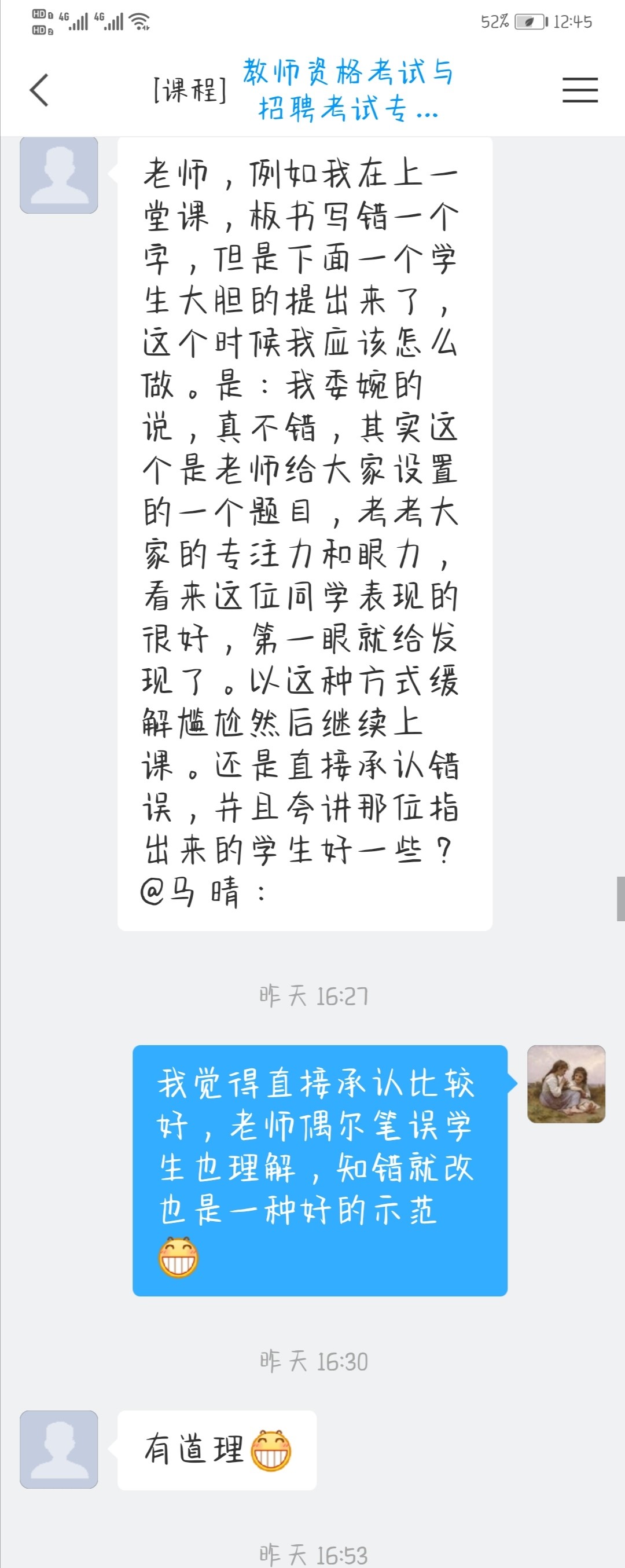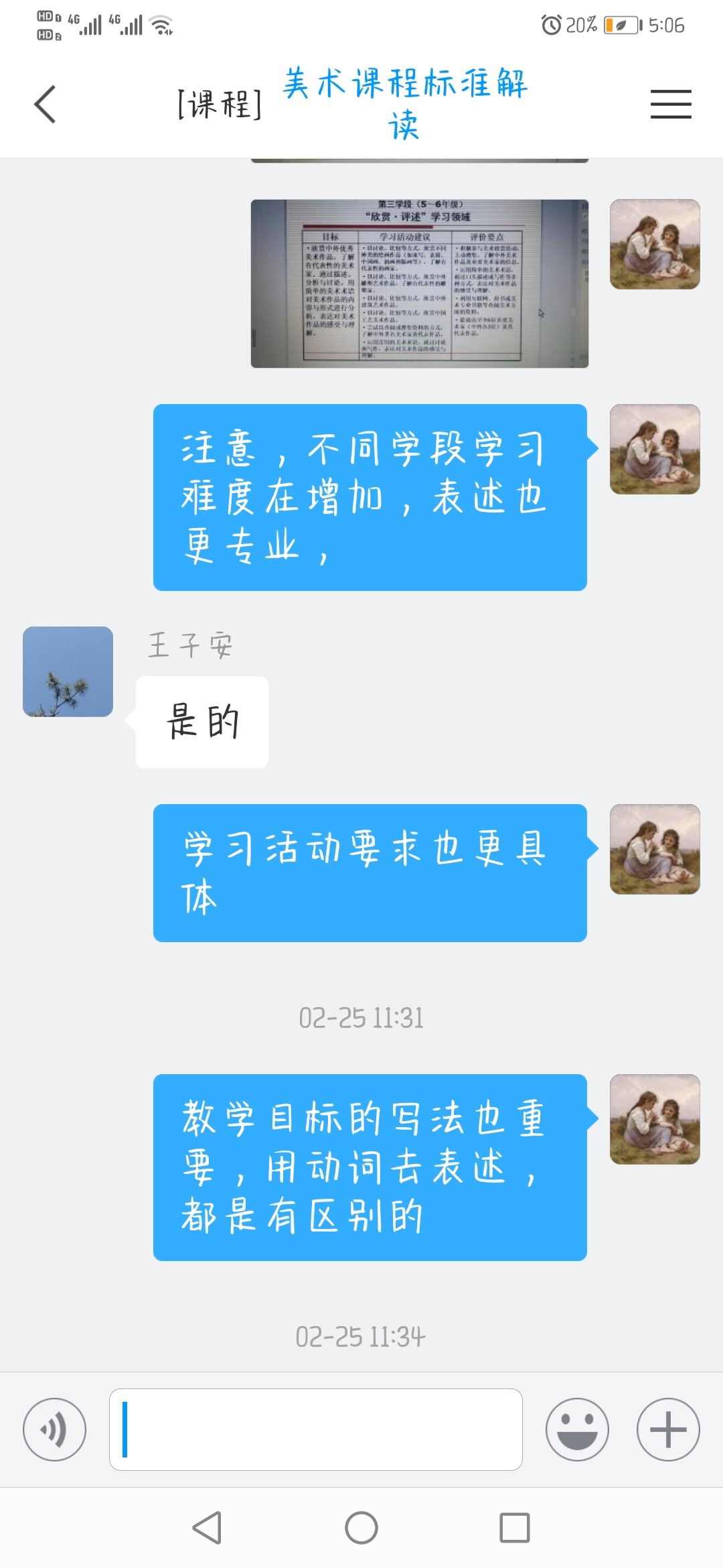 场景二:面对大一年级《美术课程标准解读》课程,我推荐了一门幕课,辅以重点和关键问题的解释。我发现网络教学的突出特点就是交互体验效果突出。原本美术专业的理论课教学比较难,学生的专注力和参与度都没有技法课好。反而在网络平台,师生互动更强,每次课都能保证90-100%的参与度,学生在群聊中的问题也让我应接不暇,学生的活动产生了辐射效应,提问和交流的学生越来越多,从提简单的问题逐步上升到对本科知识的深入研讨,教学效果出乎意料的好。