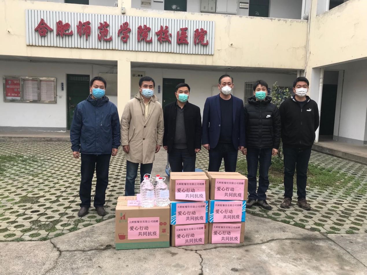 2月25日下午,我校滨湖校区桂园食堂餐饮服务企业——天鲜配餐饮有限公司向学校捐赠疫情防控物资仪式在锦绣校区校医院举行。天鲜配餐饮有限公司董事长黄坤、后勤处主要负责人及相关科室同志参加捐赠活动。黄坤表示,作为学校餐饮服务企业,我们也属于学校的一份子,我们的心是和学校连在一起的,这些物资是我们应尽的绵薄之力,相信在全校共同努力下,一定能早日战胜疫情!后勤处主要负责人代表学校向天鲜配餐饮有限公司的爱心捐助表示敬意和感谢。