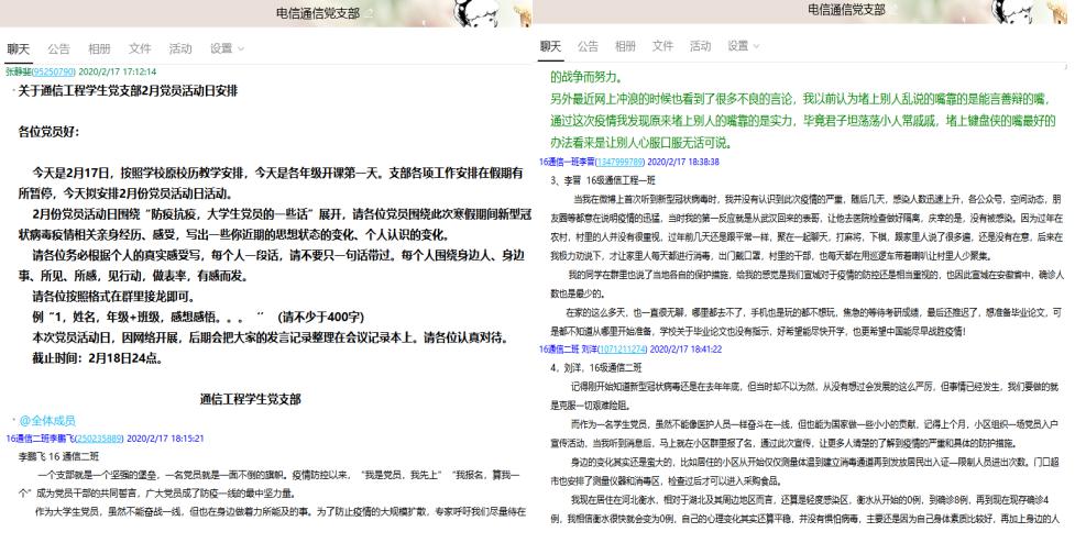 疫情就是命令、防控就是责任,学院组织学生党支部开展“我是党员我承诺,践行承诺事项”线上战“疫”活动,倡导全体学生党员积极配合各项工作,做好自我防护,不造谣、不信谣、不传谣,担起新时代大学生党员的责任。