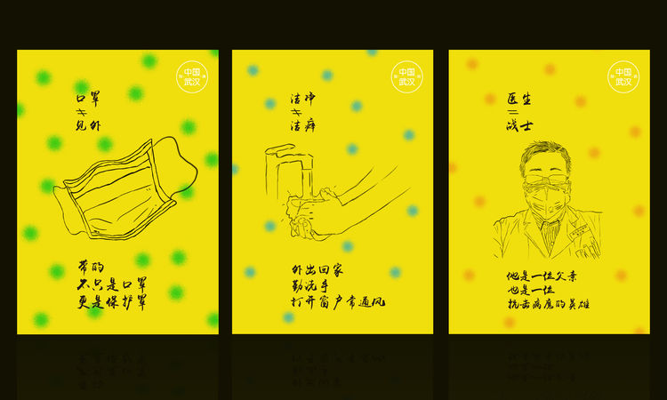 编者按:居家防疫,居家育人,考验着高校教师的政治担当和立德树人初心使命。当前新型冠状病毒感染的肺炎疫情形势依然严峻,艺术传媒学院师生深入学习贯彻习近平总书记重要讲话重要指示批示精神,以“疫情就是命令,防控就是责任”为主题,通过“党支部、任课老师、导师组”三条途径,指导广大学生积极参与到这场“坚决打赢疫情阻击战”社会实践。在实践育人行动中,艺术传媒学院以导师组为主,美术学、产品、动画、服装与服饰设计、环境艺术设计、视觉传达设计六个专业组织了26多位导师,指导学生创作了绘画、书法、篆刻、招贴、插画等形式的艺术创作150余幅作品。现将这些作品整理摘编,分为上下篇陆续发布,供大家学习参考。