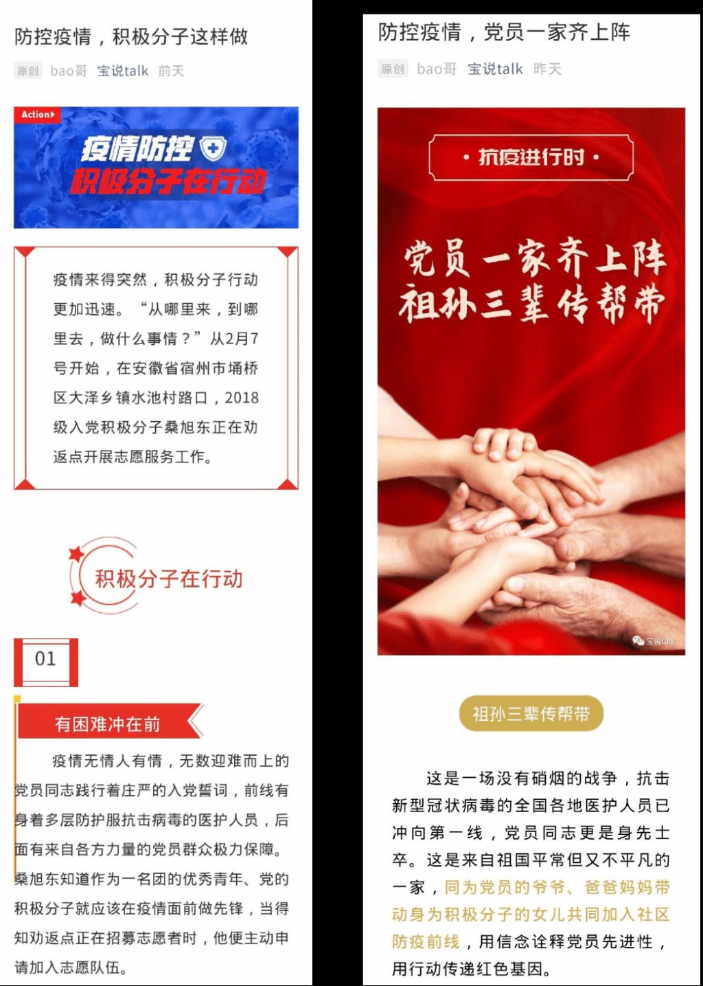 疫情肆虐,为避免学生出现恐慌、焦虑、传谣等心理或异常行为,学院学工队伍通过电话、群组等多渠道进行正面引导;借助学院心理教师资源优势开展在线心理疏导;强化空中思政,微信公众号“宝说talk”(原“宝哥说”)自2月2日起,连续发布“不信谣、不传谣”、“科学预防知识”、“积极分子在行动”等4篇文章,引导学生增强信心、掌握防护知识,做有素养、有担当的新青年。