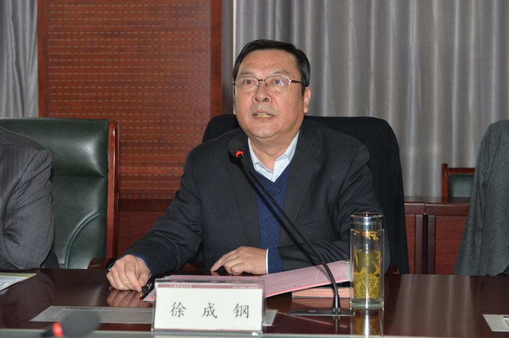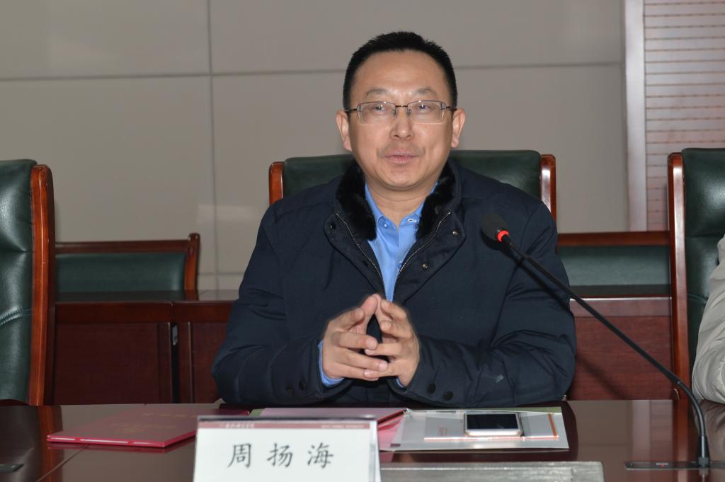 徐成钢发表了热情洋溢的致辞。他称赞周扬海是一位的优秀企业家,具有深厚的母校情怀和家乡情结,具有强烈的社会责任感,创业不忘社会,发展不忘母校,积极向母校捐资助教,充分体现了“自强不息,追求卓越”的合师精神,完美诠释了“爱满天下,知行合一”的合师校训,不愧为我院杰出校友,是母校的骄傲和自豪。他介绍了学院近年来事业发展取得的成就,指出校友是学院持续发展的绿色资源、不竭动力,学院发展成就的取得是全院师生员工的努力拼搏的结果,也是广大校友鼎力支持的结果。他指出,在岁末年初学校召开教育工作会议,谋划2020年重点工作这一特殊时刻,周扬海校友回母校捐赠,对我们不仅仅是经济支持,更是莫大的精神鼓舞,这种感恩回馈行为将激励全院教职工在新的一年里更加奋发进取,推动学院实现新的跨越式发展,为国家和社会培养更多有真知、有爱心、有责任、有担当的优秀人才。他强调,相关单位部门要充分利用好捐赠资金,促进学院内涵建设和办学质量提升,不辜负校友的深厚情谊和殷切期盼。他表示,学院一贯高度重视校友工作,今后将进一步加强与校友企业的合作,同向同心,共促共进,共谋发展。最后他衷心祝愿366公司在新的一年蒸蒸日上,再创辉煌。