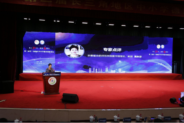 本网讯 第二届长三角地区中小学德育创新论坛于12月5日至7日在合肥隆重举行,来自长三角三省一市的16个市(区)的教育局领导与相关媒体支持单位代表齐聚合肥,我院图书馆馆长、吴秋芬教授受邀担任第一分论坛点评专家并做主旨发言。