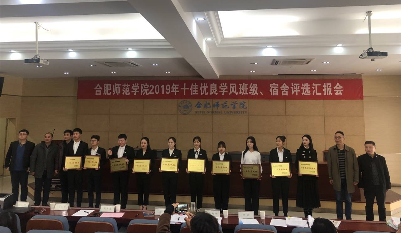 根据综合材料评审成绩和现场汇报表现,2018级音乐学2班、2017级生物科学师范班、2016级学前教育(中美合作)班、2017级产品设计班、2017级汉语言文学师范2班、2017级财务管理(3+1)班、2017级制药工程班、2018级舞蹈表演班、2017级财务管理1班、2017级经济统计学班获得学院“十佳优良学风班级”荣誉称号,物理与材料工程学院1#224宿舍、经济与管理学院10#124宿舍、电子信息与电气工程学院5#219宿舍、计算机学院10#107宿舍、数学与统计学院9#402宿舍、外国语学院10#319宿舍、文学院4#514宿舍、教师教育学院2#214宿舍、马克思主义学院2#310宿舍、生命科学学院6#714宿舍获得学院“十佳优良学风宿舍”荣誉称号,评委们现场为他们颁发了奖牌。