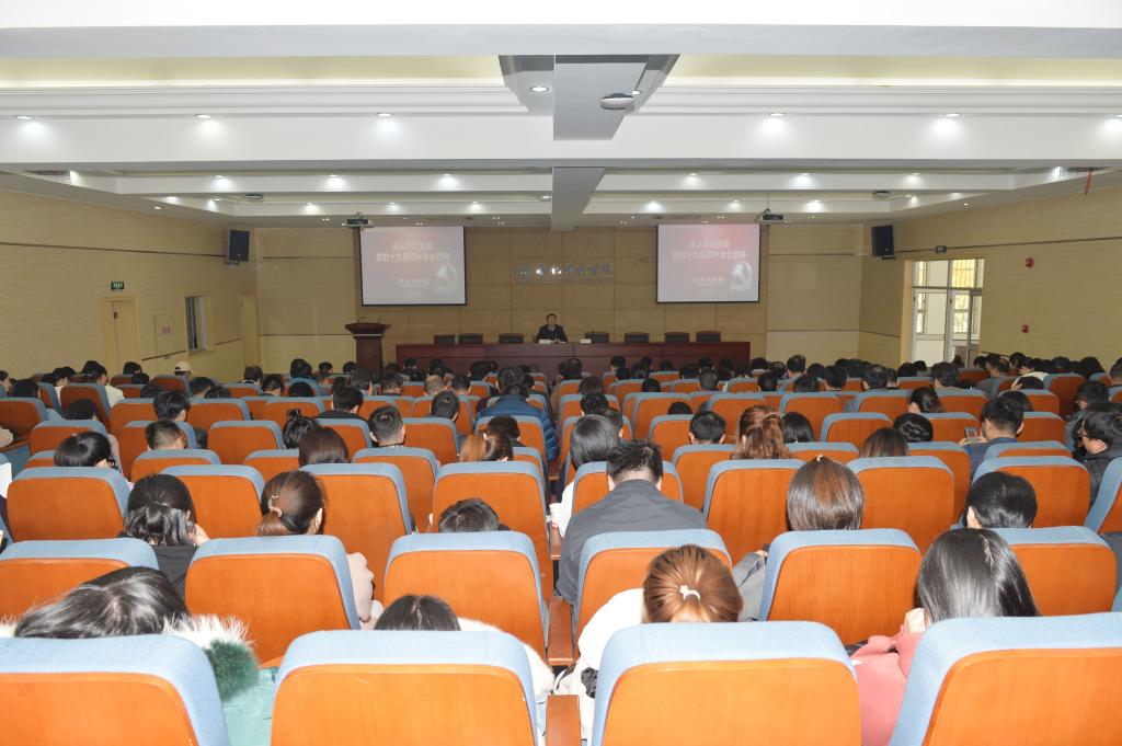 本网讯 12月11日,院党委书记徐成钢在锦绣校区学术报告厅为学院干部师生作党的十九届四中全会精神宣讲报告。学院全体处级干部,主题教育科级干部培训班全体学员,学生代表共计300余人参加了报告会。党委委员、宣传部部长操申斌主持报告会。