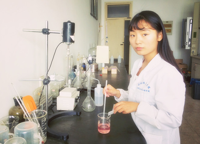 化工专业的最大特点就是与实验密不可分,这对很多女生都是一个挑战。陈雨晴却把很多人看来的困难当爱好,把实验室的寂寞当个人修炼。她会为一个小实验耗费好几天,还会为一个结论的细微误差而刨根问底。在一次茶叶提取咖啡因的实验中,她们小组经过了六个小时的实验,仅得到了0.002克咖啡因产品,距离目标量存在着很大的差距。别的同学都不以为然,她却对自己的实验进行了认真反思,认真分析存在问题,先后去图书馆借阅了《绿色化学化工技术》《天然产物化学化工》《化学化工药物大辞典》等专业书籍,仔细阅读,认真记录,又到实验室反复做实验提高验证。经过几次实验,她发现了提取的几个关键点,分别是:将茶叶末和乙醇放在索氏提取器中进行加热回流,控制在8至10分钟单次虹吸,共进行七次虹吸,直到提取液颜色变浅再终止抽提。在后期的蒸气浴加热蒸发时为了避免暴沸,运用蒸发过程的搅拌机理,改善实验步骤,将液体飞溅伤害降到最低,只有这样才能得到满意的实验结果,一次实验就要持续六七个小时。陈雨晴说,实验带给她的不仅是科学的精神,更有耐得住寂寞,经得起失败的决心和坚持。