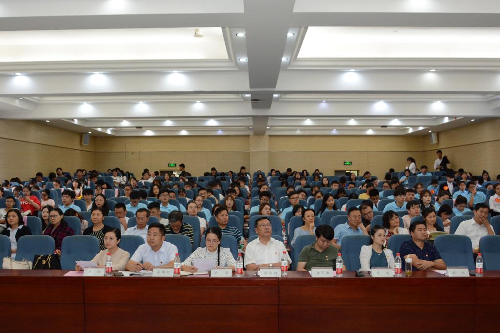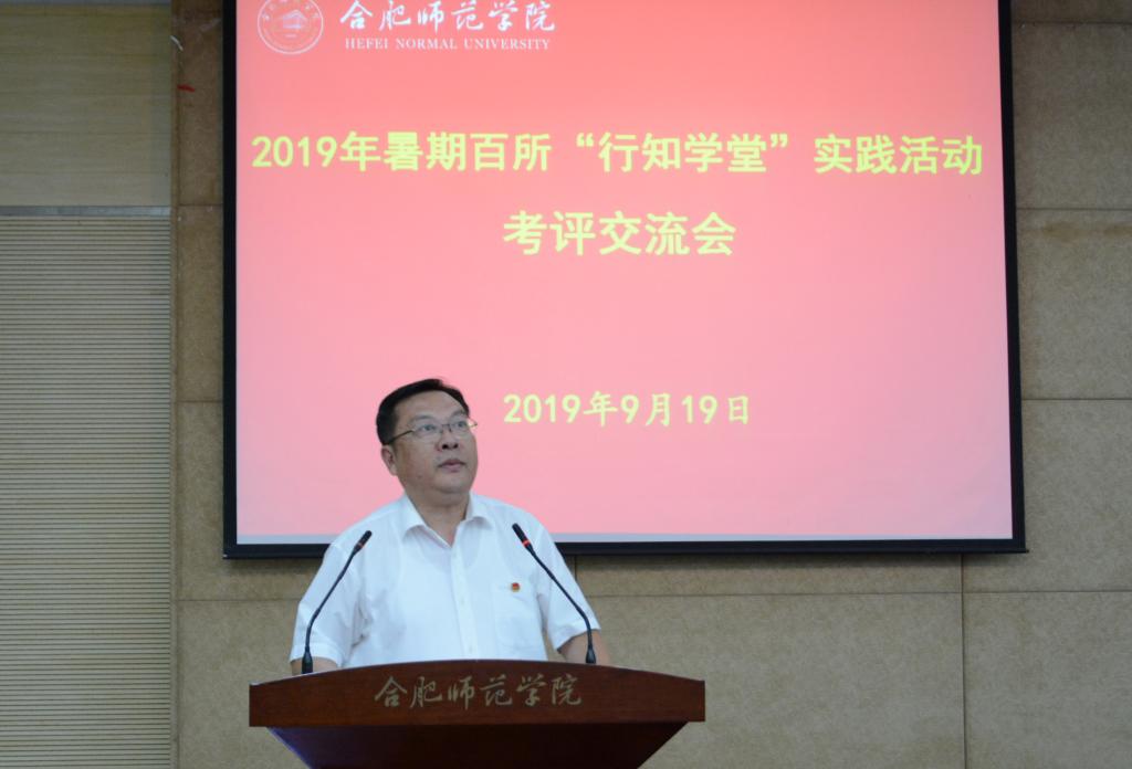 本网讯 9月19日下午,学院2019年暑期百所“行知学堂”实践活动考评交流会在锦绣校区学术报告厅举行。党委书记徐成钢、共青团安徽省委学校部部长卢蓉、合肥工业大学团委副书记武国剑、安徽农业大学团委副书记任琪、安徽建筑大学团委书记唐志敏、安徽三联学院团委书记李燕、安徽外国语学院团委书记程欢,各二级学院党总支书记、分团委书记、行知学堂“小先生”代表近300人参加考评会。