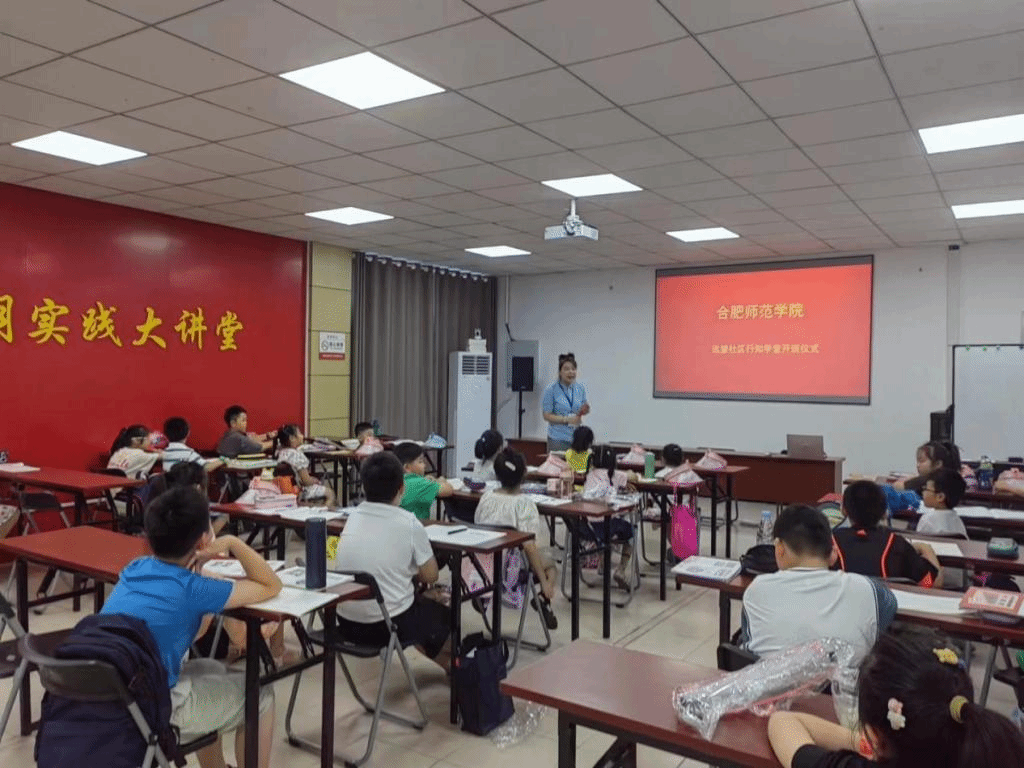 本网讯 近日,物理与材料工程学院淮南市行知学堂正式启动,来自不同学院不同专业的24名“小先生”分成两批分别在远望社区、居南社区和富华社区等陆续开班,迎接小学员,共度暑期美好时光。