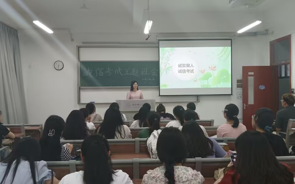 6月16日,辅导员唐淼、屠家宝、胡蝶分别在锦绣校区和滨湖校区召开“诚实做人,诚信考试”主题教育班会,向同学们宣讲诚信的内涵及“失信”的危害,结合我院《关于考试违纪和作弊处分条例》,进一步强调每位学生要充分利用时间积极备考,要以诚信的态度对待每场考试,严格做到诚实守信、严谨自律。会后,各年级还举行了主题演讲、诚信考试承诺签名、诚信考试宣誓等活动。