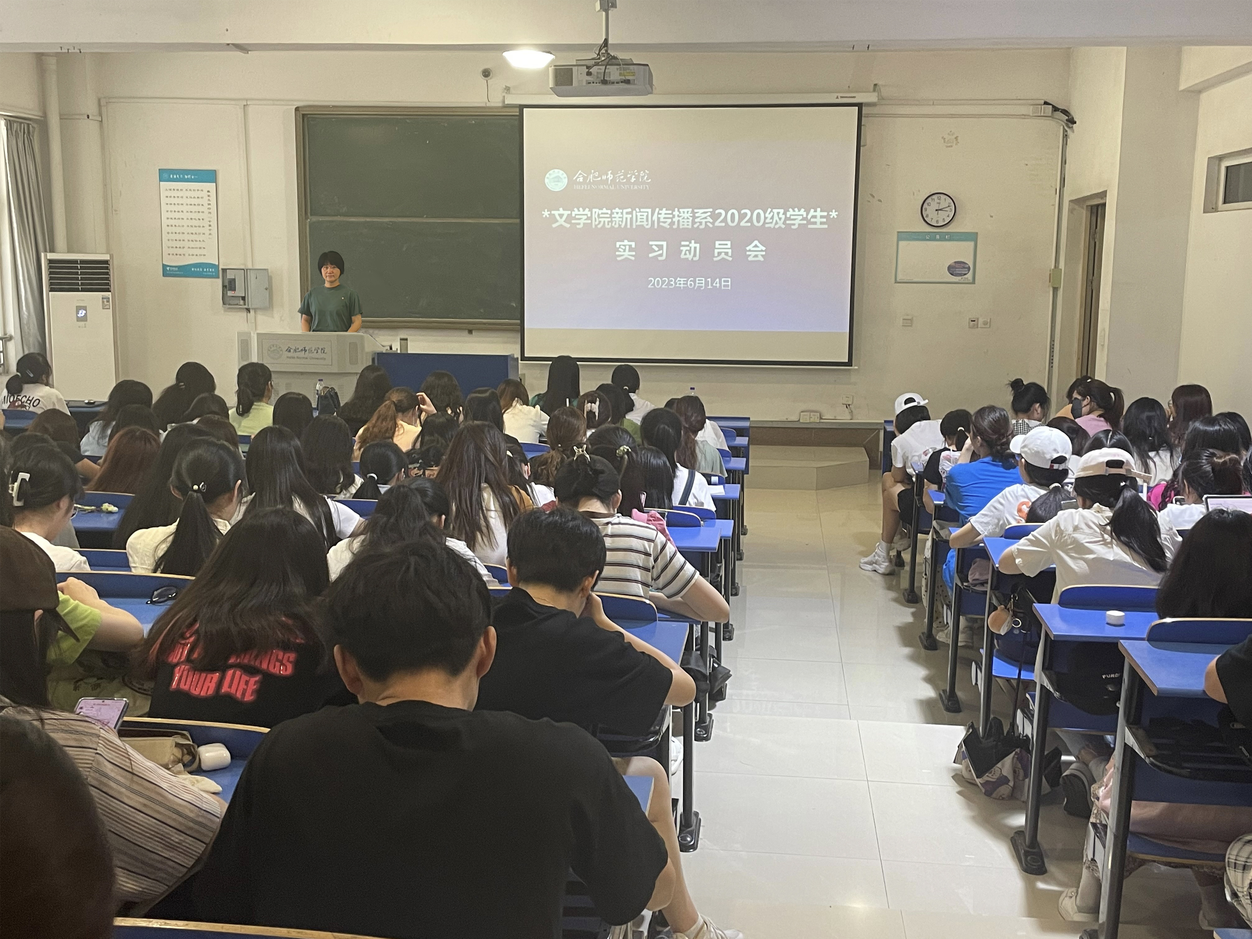 本网讯 6月14日下午,文学院联合合作企业共同举办一场别开生面的实习动员会,邀请智慧星光、朋派科技、视趣科技和网易安徽等实习基地负责人及优秀毕业生,共同为2020级新闻传播系学生进行实习动员布置。文学院党委副书记夏娟、新闻传播系负责人和相关专业教师等参加会议。