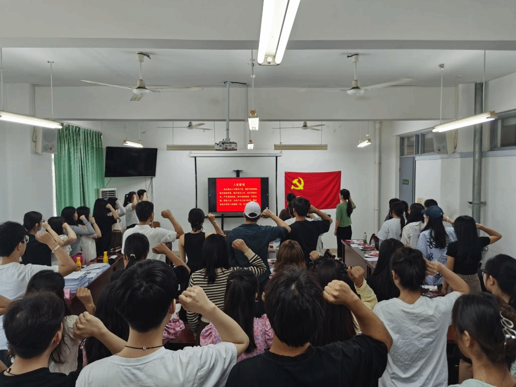 全体党员面向党旗,庄严宣誓,用铿锵有力的声音,重温入党誓词,表达了对党的无限忠诚和为共产主义奋斗终身的坚定决心。