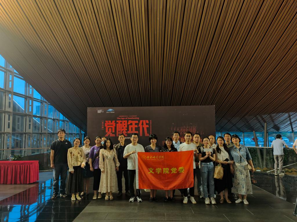本网讯 为进一步强化党性教育,促进教师对红色文化的深入理解,提升专业教师课程思政的能力,6月8日,文学院新媒体系教工党支部将主题党日活动搬到剧院,组织党员前往合肥大剧院,观看红色舞台剧《觉醒年代》,接受党史教育和灵魂洗礼。
