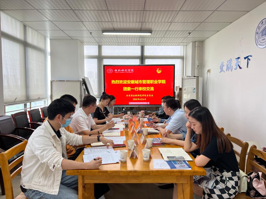 本网讯 6月6日上午,安徽城市管理职业学院团委书记何长龙一行8人来我院调研交流共青团工作,我院团委全体人员参加交流座谈会。