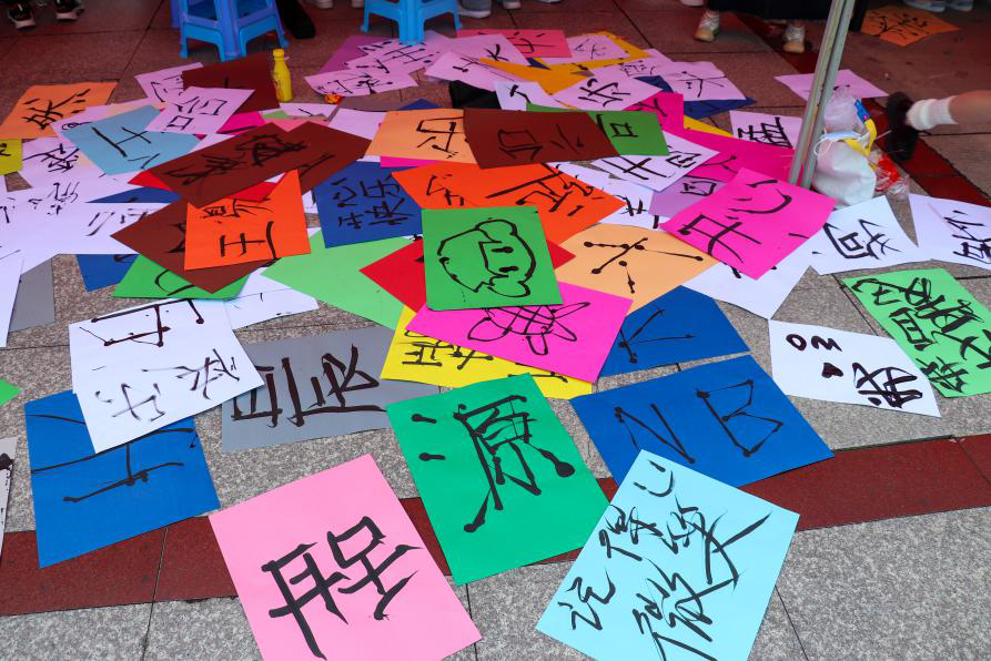 活动当天现场,同学们参与热情高涨。有的同学书写下自己的名字,表达对自我的关注与重视;有的同学写下了自己喜欢的小动物,表达内心的爱心与责任心;有的同学写下当下的心情以及对于自己未来的美好祝愿。整场活动持续开展两个半小时,共创造文字和图案作品多达几百幅,活动在一片欢声笑语中完美落下帷幕。