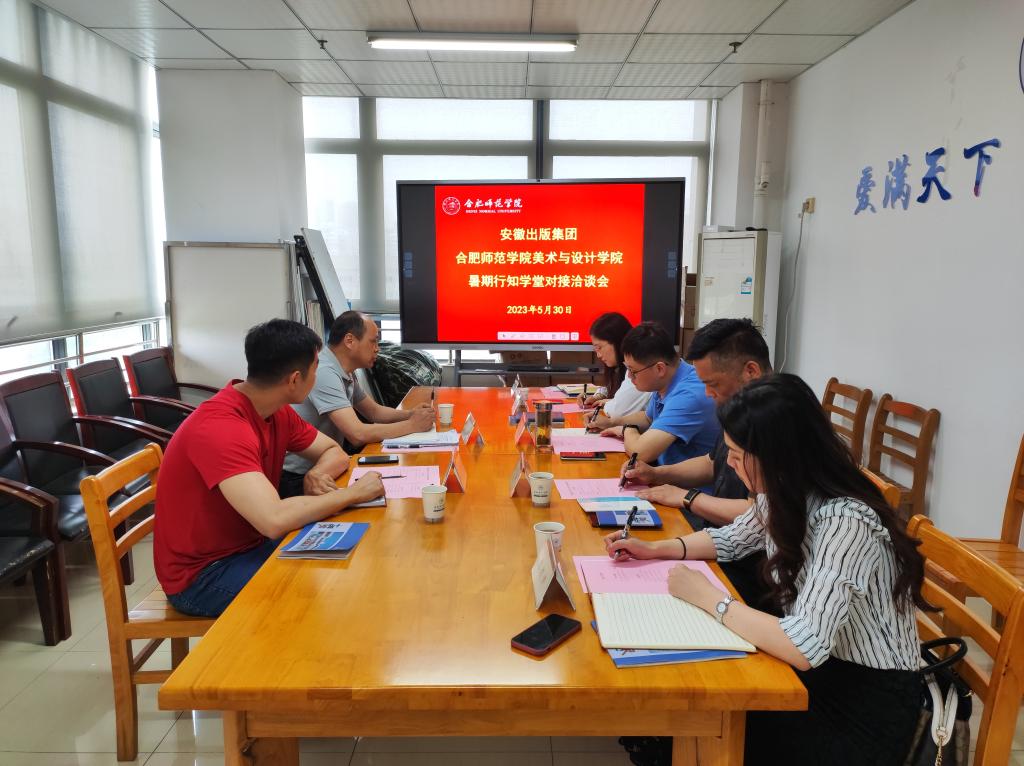 杨智充分肯定了往年和美术与设计学院共同打造的安徽出版集团行知学堂的活动成果,表达了新一年就行知学堂项目建设继续合作的意愿,提出了关于增设学堂服务点、充实小先生队伍建设、丰富特色课程内涵的相关需求。沙渺介绍了学院行知学堂概况,并重点介绍了美术与设计学院关于特色课程打造的建设经验。