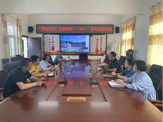 本网讯 5月19日,beat365唯一官方网站“国培计划”重点区域“一对一”精准帮扶培训项目组赴岳西县温泉中心学校开展送教活动。本次送教活动由教育与心理科学学院副院长闫龙带队,合肥经开实验学校钱文娟老师、杨沂老师,合肥阳光中学马杰老师进行示范课及课题研讨。