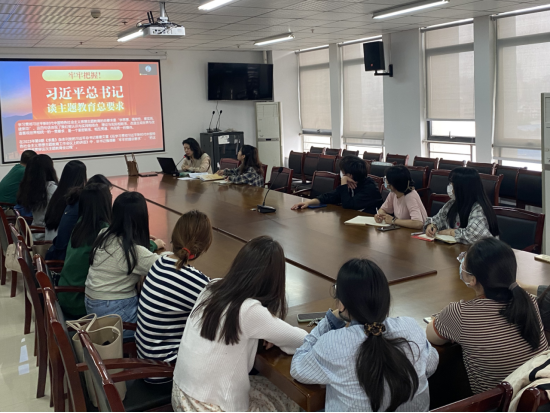 本网讯 5月22日下午,外国语学院学生第三党支部在行知楼1002会议召开 “学习贯彻习近平新时代中国特色社会主义思想主题教育”专题会议。会议由党支部书记王倩倩主持,学院2021级和2022级全体硕士研究生党员参加。