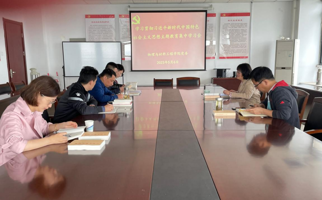 本网讯 5月6日上午,物理与材料工程学院党委召开学习贯彻习近平新时代中国特色社会主义思想主题教育学习会和主题教育工作推进会,学院理论学习中心组成员及各党支部书记参加。会议由学院党委书记唐洁主持。