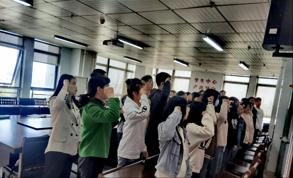 会议伊始,郑支农带领毕业生党员重温了入党誓词。誓词宣读铿锵有力,理想信念坚定不移,增强了毕业生党员不负韶华,不负时代,牢记“强国有我,奋斗青春”的决心,牢记实现中华民族伟大复兴的担当和使命!